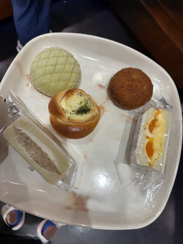 陽の当たる、1人用のテーブルがあったのでそこでのんびりカレーパンとなんか4種的なチーズのパンだけ食べました!