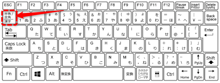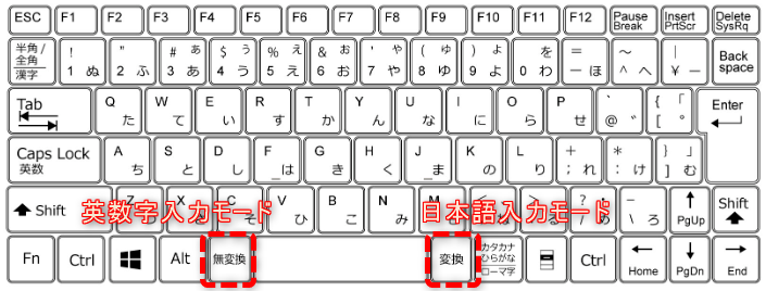 Windowsの日本語入力モードの切り替えって、左上の方の[半角/全角]キーを使いますよね。
