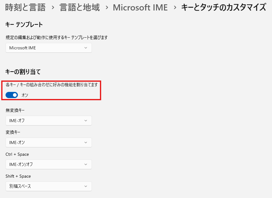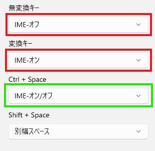 緑枠の設定はLinuxでの入力モード切替方法となりますので、