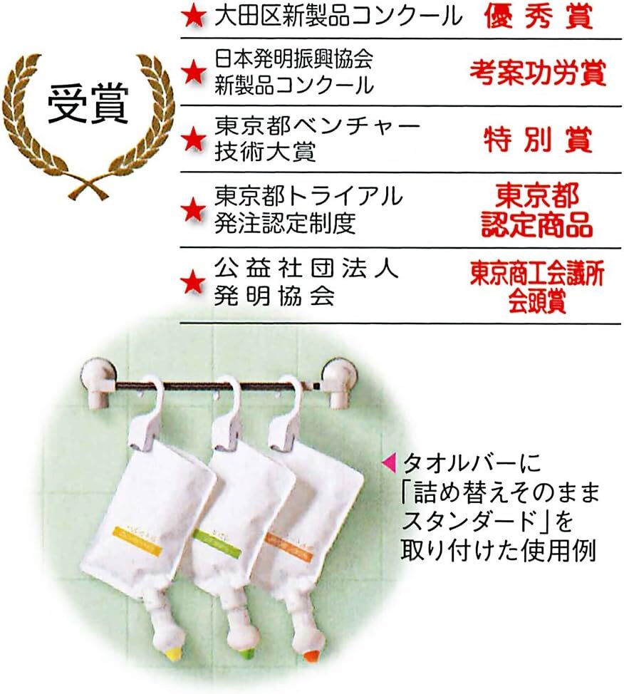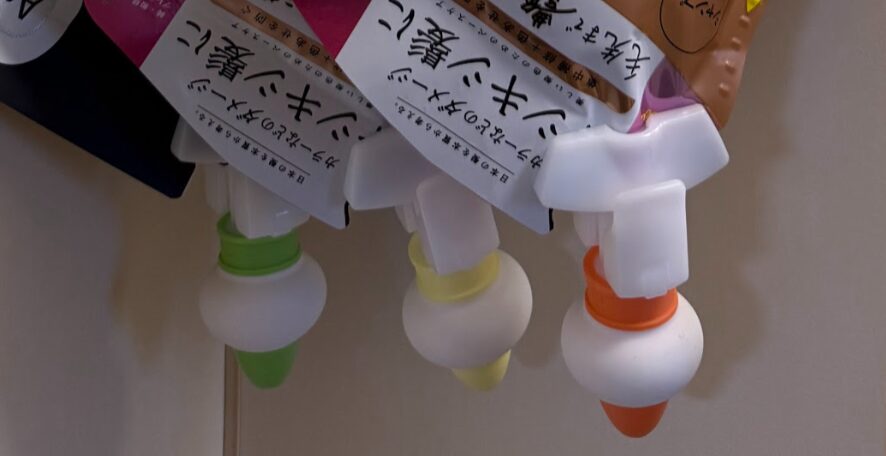 そこで、前から気になっていた、詰め替え袋のまま、しかも吊り下げて利用できて、汚れやスペースの問題を解決されるアイテムを購入してみました。