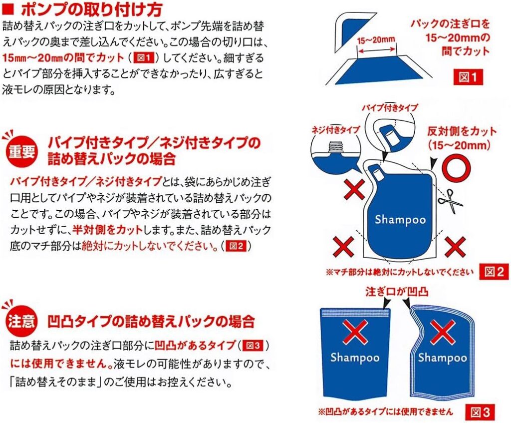 まずは詰め替え袋にポンプの取付!