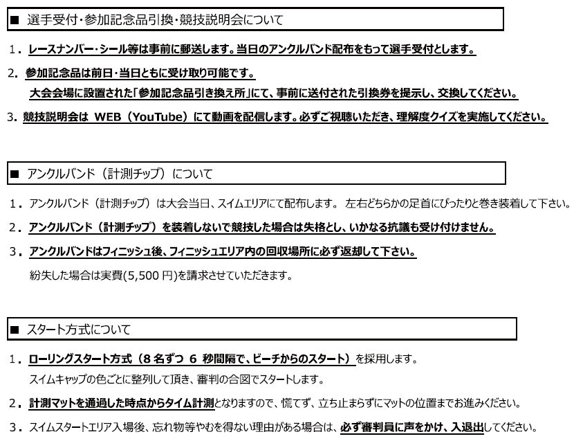 スイムスタート前のアンクルバンド配布を持って出場登録