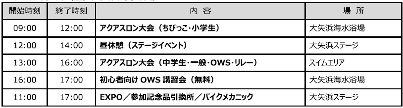アクアスロン大会・EXPO・参加記念品引き換え・初心者向けOWS練習会