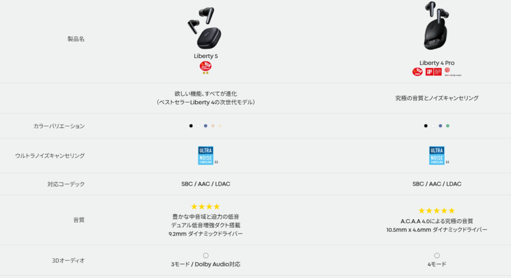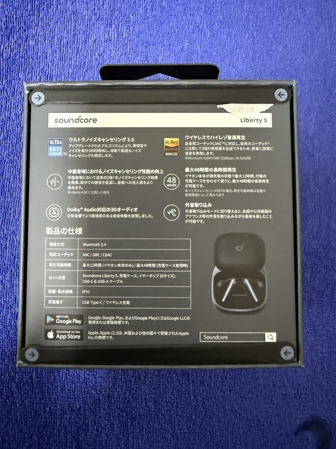 高機能で充電確認モニターがついていたりと、わくわくするSoundcore Liberty 4 Proと悩みましたが、価格と発売時期を考えて、Anker Soundcore Liberty 5にしました。