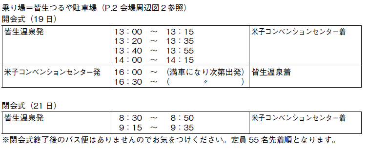 皆生温泉〜米子コンベンションセンターに臨時のシャトルバスを運行しますので、ご希望の方はご利用ください。