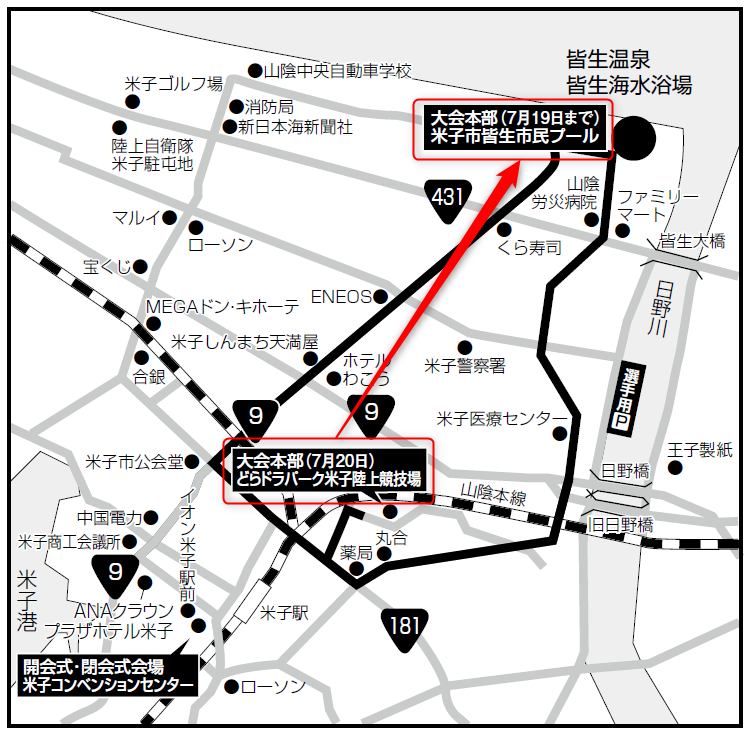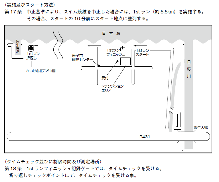 開会式及び競技説明会には、必ず選手本人が出席することとし、欠席した場合には、皆生大