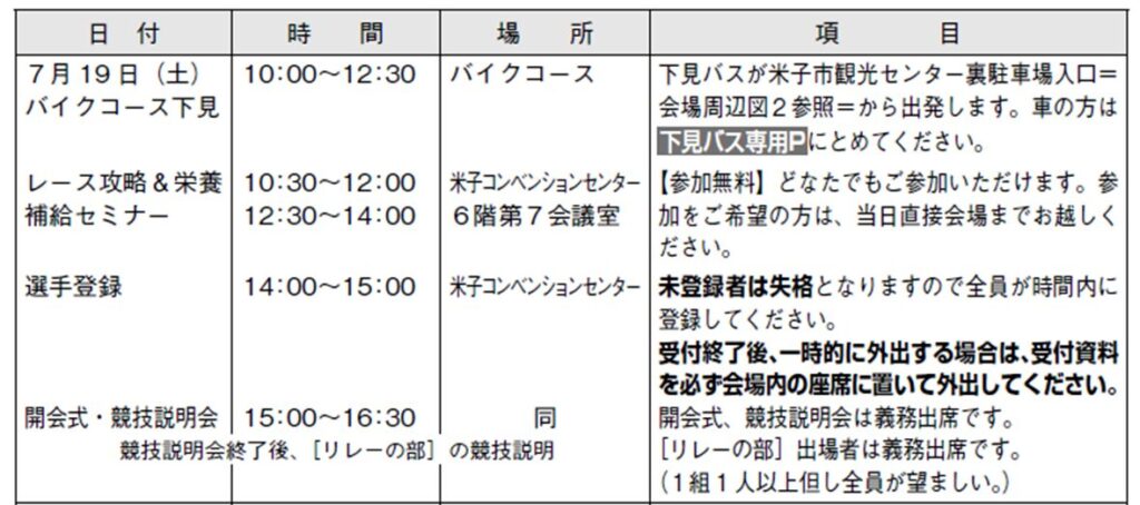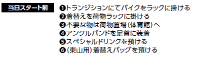 またレース中にバイクサポートを受けて、費用が発生した場合は米子コンベンションセンターにて必ず精算を行ってください。