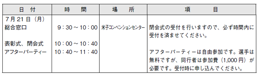 開会式 7月19 日(土)・閉会式 7月21 日(月)