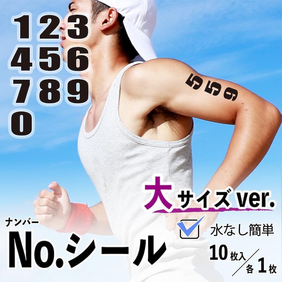 o.シール 10枚組 水無しで貼れる ナンバー 数字 ゼッケン トライアスロン マラソン nos1 (大)