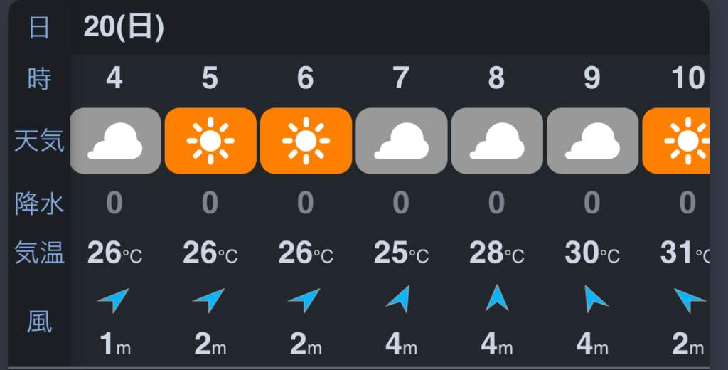 予報では35℃を超えることはなさそうでした。