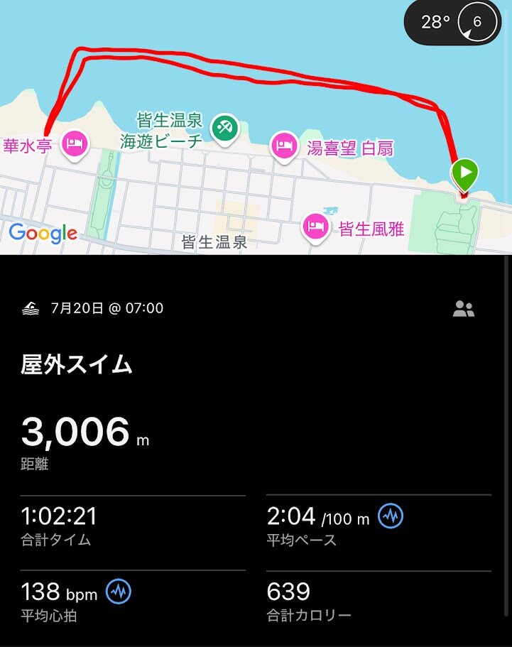 何回も言いますが、今回はそれがかなり綺麗に感じたので嬉しいのと、人がいるところに合流できた安心感を感じながら泳ぐ。