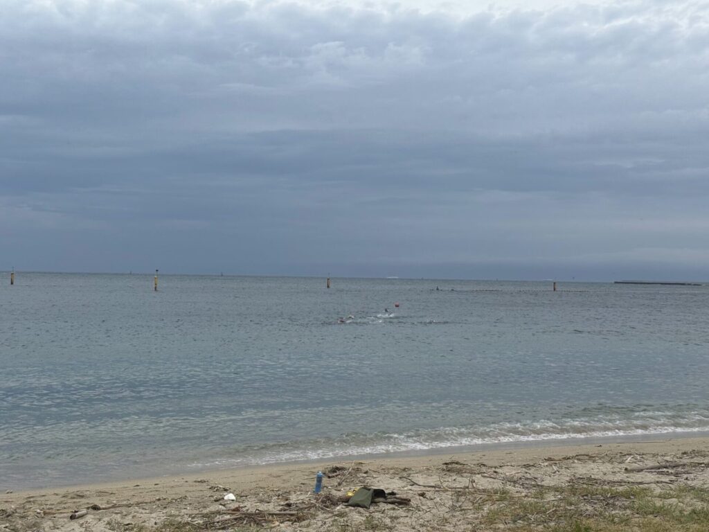 天気予報では、雨でしたが、雨の中でもオープンウォータースイムは関係ないので、とりあえず現地にいく!