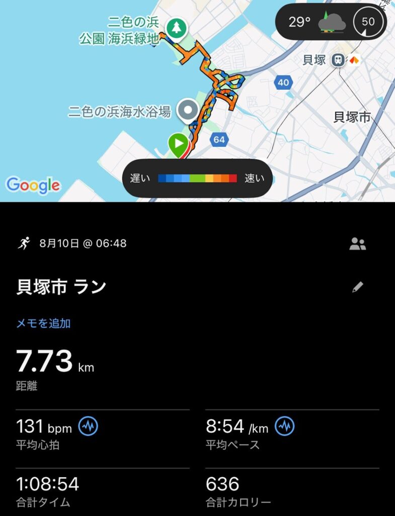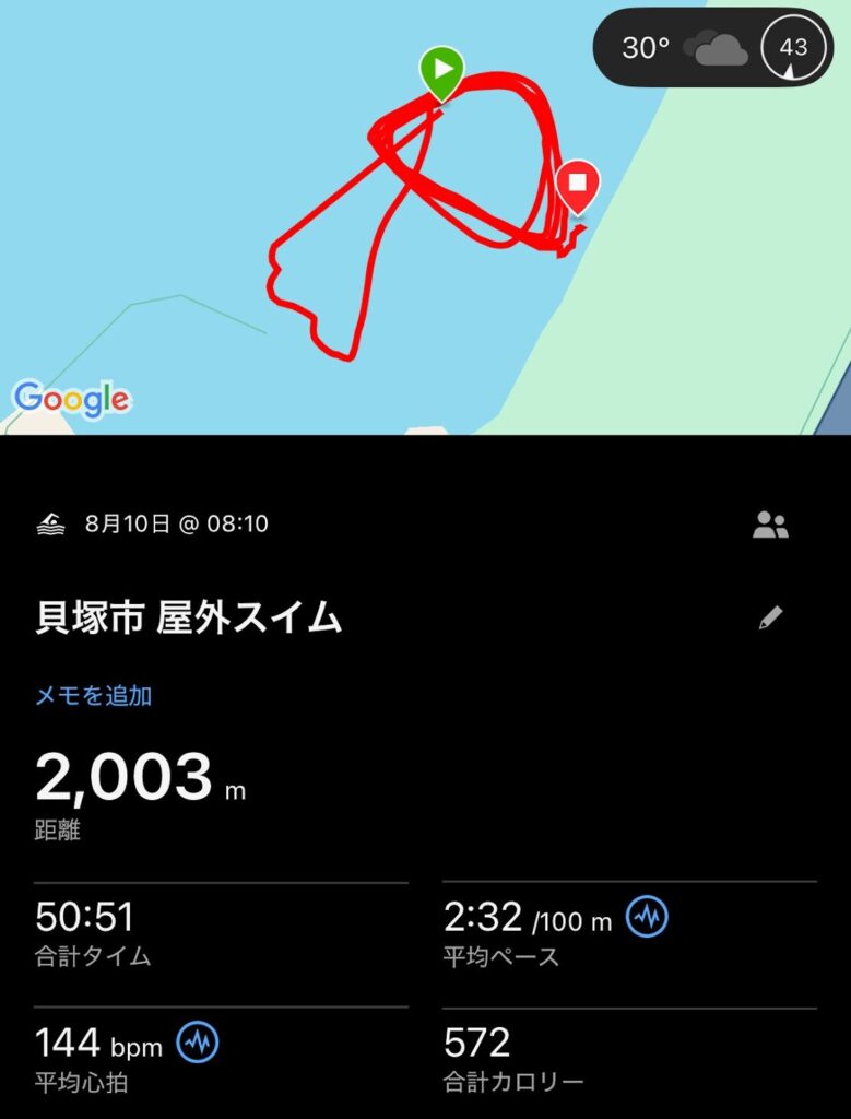 なんか二色の浜でおよぐと、平均ペースがいつも厳しく計算される様な気がする・・・