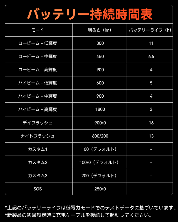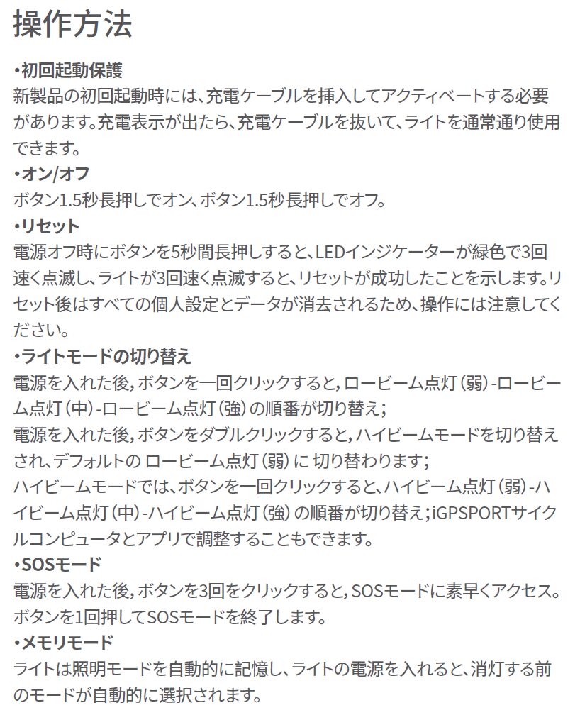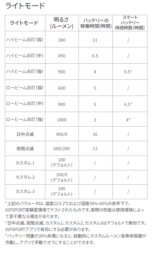 サイコンから、明るさ調整やモードが変更できて、また使用時間の目安も表示してくれるのは、助かります!