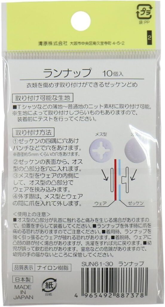 KIYOHARA サンコッコー ゼッケン どめ ランナップ 10個入り WT ホワイト SUN61-30
