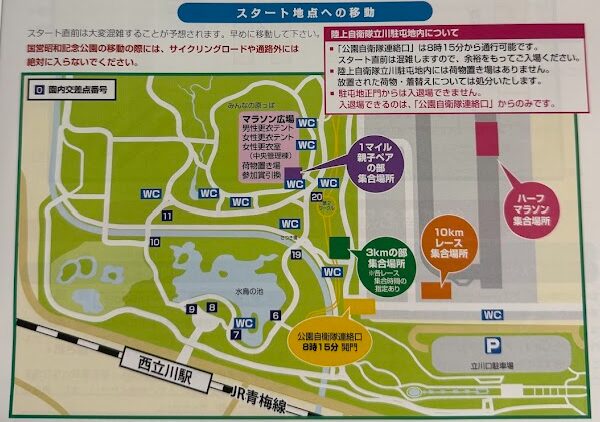 ハーフなので立川駐屯地からのスタートになるので、普段は入れない、慣れてない場所に、「公園自衛隊連絡口」を利用して移動しないといけないみたいですね。