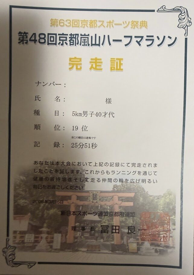 京都嵐山ハーフマラソン5キロに参加してきました。