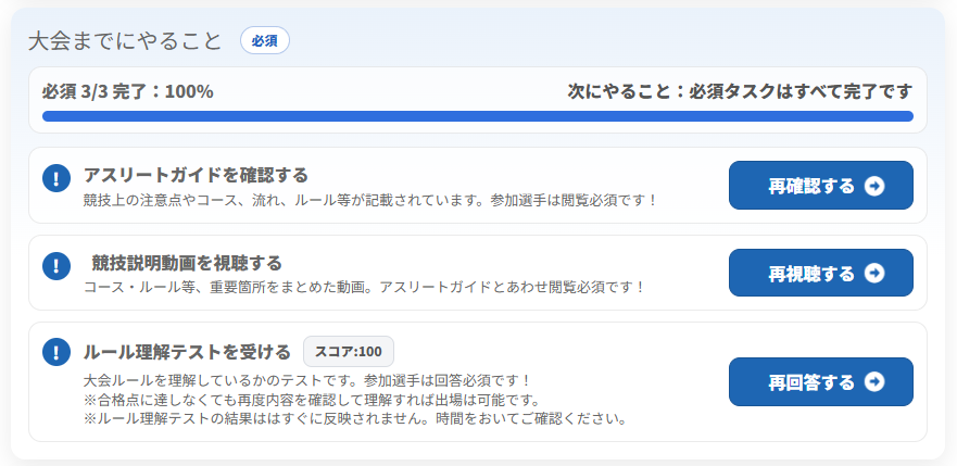 アスリートガイドを確認したか?