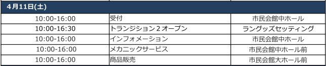 ・11:00~14:00 バイクピックアップ可能(当日アナウンスあり)