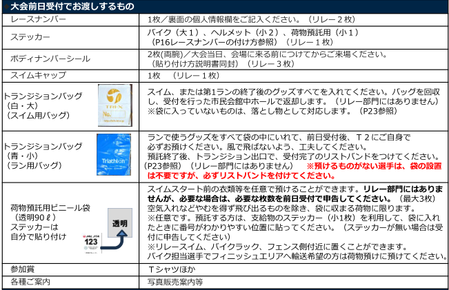 大会前日受付でお渡しするもの