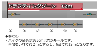・オートバイは15m、車両は35mがドラフトゾーンです。