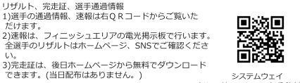 リザルト、完走証、選手通過情報